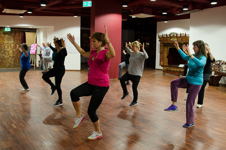 W Domu Lekarza Seniora sięgnęliśmy do niektórych już znanych ćwiczeń WU QIN XI, czyli zestawu ĆWICZEŃ PIĘCIU ZWIERZĄT. Wśród owych pięciu jest oczywiście ta jedna – małpa!, która ćwiczona regularnie rozwija giętkość, szybkość i elastyczność, ma korzystny wpływ na serce i jelito cienkie. Dla przypomnienia filmik: