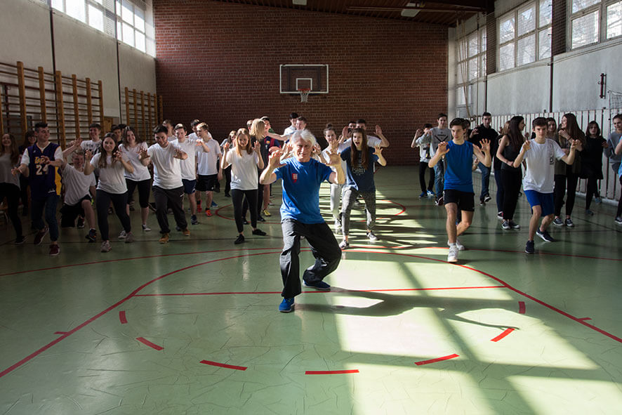 Nowością jaką możemy się podzielić z Wami jest udział naszej Fundacji w przedsięwzięciu „Lokomotywa zmian” w projekcie „Ja i komputer” do którego zaprosiła nas nasza adeptka taijiquan Anna Lonc – Markowska. Założeniami projektu jest integracja międzypokoleniowa oraz poprawa ergonomii pracy uczniów w szkole i w domu, w tym stosowanie ćwiczeń ruchowych w przerwach śródlekcyjnych. Fundacja, dysponując wiedzą i umiejętnościami oraz wiekiem prowadzącego:-) gościła przed Kordegardą uczniów IV Liceum Ogólnokształcącego im. Adama Mickiewicza w Warszawie. Tym razem to nie młodzi uczyli starszych jak obsługiwać komputery, ale starsi młodych, jak zwinnie i z gracją się poruszać – kiedy całymi dniami spędza się czas przed ekranami komputerów czy smartfonów. Wykonaliśmy wspólnie Ćwiczenia Pięciu Zwierząt – zabawa była przednia. Następnie w ramach rewanżu, Licealiści zaprosili naszego nauczyciela Jana do swojej szkoły i tam na sali gimnastycznej około 50 uczniów zmierzyło się ze starożytną gimnastyką chińską. O tym czy tradycja nie zaginie przekonamy się za jakiś czas! W każdym razie zajęcia pokazały, że opanowane ruchy małpy czy tygrysa podniosą atrakcyjność na dyskotekach:-)