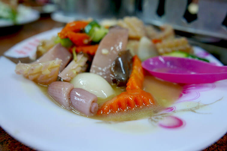 Z ciekawostek kulinarnych, to zupa na bazie wywaru z mięsa z owocami lotosu i mikro-krewetki, wielkości paznokcia, podobnej wielkości rybki można spotkać z orzeszkami ziemnymi…
