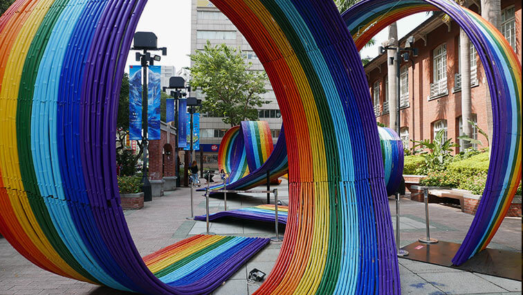 Z ciekawostek, spotkaliśmy bardziej wybujałą siostrę naszej warszawskiej tęczy z Placu Zbawiciela – tu wykonaną z bambusów – ta nie wzbudzała takich emocji, jak nasza – turyści tylko się na jej tle fotografowali 🙂 . Zwiedziliśmy również Mauzoleum oraz Plac Czang – Kajszeka, jak i dwie świątynie, Tianhou oraz Longshan, z pobliskim nocnym marketem – czyli klasyczne turystyczne punkty dla obcokrajowców w Taipei. W ciągu paru godzin nie spotkaliśmy żadnego innego „białego” turysty i ogólnie nie widuje się ich tu zbyt wielu, przynajmniej w tym okresie. Jak dotąd Taipei i ogólnie Tajwan nie przyciągają zbyt wielu turystów spoza Azji, a szkoda…