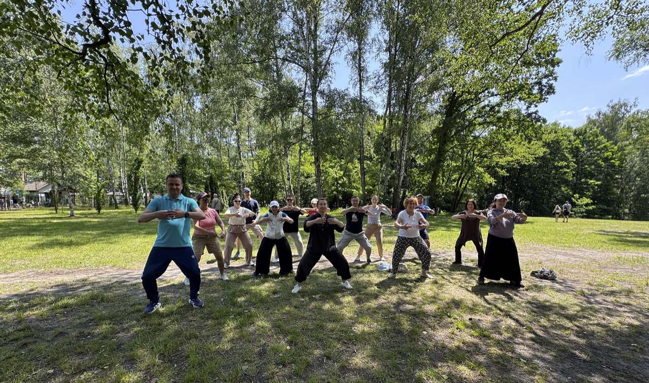 Ten piękny park tworzy idealne warunki do wspólnych ćwiczeń na świeżym powietrzu. W okresie letnim organizujemy tam spotkania z qigongiem i taiji, podczas których uczestnicy mogą czerpać energię zarówno z harmonijnych ruchów, jak i z otaczającej ich przyrody. Otwarta przestrzeń, zieleń i spokój sprzyjają wyciszeniu, regeneracji oraz głębszemu kontaktowi z własnym ciałem i oddechem.