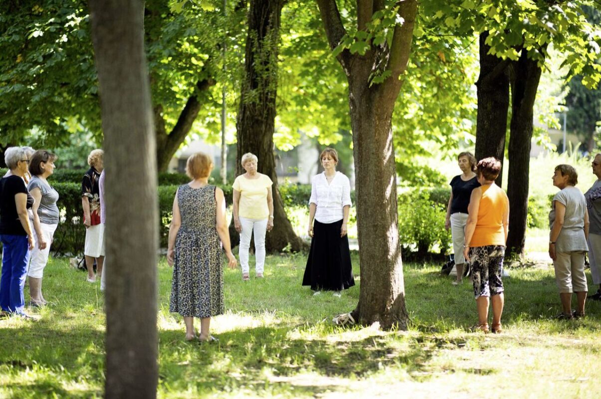 Sztukę poznajemy poprzez kontemplację i doświadczenie — dopiero wtedy naprawdę zaczyna do nas przemawiać. Podobnie jest z świadomym ruchem: im uważniej go praktykujemy, tym wyraźniej odczuwamy jego dobroczynny wpływ na nasze zdrowie. Regularne ćwiczenia poprawiają oddech, równowagę i elastyczność ciała, redukują napięcia, uspokajają umysł i przywracają naturalną harmonię. Jednocześnie nasze regularne spotkania mają jeszcze jeden, niezwykle ważny wymiar: pomagają przeciwdziałać pladze samotności. Wspólna praktyka, rozmowy i obecność drugiego człowieka tworzą przestrzeń bliskości, której tak często dziś brakuje. Od maja do września spotkaliśmy się 21 razy.