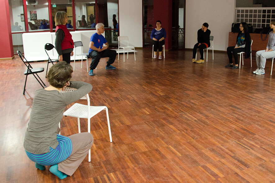 Na początek była rozgrzewka typu „shaking” czyli potrząsanie całym ciałem, od czubka głowy aż po palce u stóp, nie pomijając przy tym potrząsania nosem, oczami, uszami, łokciami, kolanami itd. I aby jeszcze tego było mało, szczękając zębami i wydając od czasu do czasu energetyzujący i leczniczy, prosto z brzucha, dźwięk „heng”!